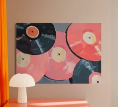 This artwork combines fine art and music, using vintage records to create a striking composition. The artist (kathrinmay) has carefully arranged the records to create a dynamic surface, evoking nostalgia. Perfect for music lovers, vintage enthusiasts, and those seeking a unique statement piece for their home or office.
