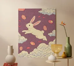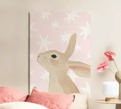 Charming white bunny illustrations on a soft pink background, perfect for cute and playful designs.