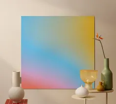 Erkunden Sie die "Helle Harmonie" mit unserem zeitgenössischen Poster aus der IRRIDESCENCE-Serie. Die modernen, minimalistischen Visualisierungen in strahlenden Farben bringen ein beruhigendes visuelles Gleichgewicht in Ihren Raum.