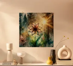Erlebe die transformative Kraft unserer Kunstwerke. Sie sind mehr als Dekoration – sie sind Tore zu innerem Frieden und spiritueller Erleuchtung. Tauche ein in die Welt der Harmonie und spirituellen Kraft. Die einzigartig, gemalten und digitalisierten Bilder erschaffen eine Atmosphäre von Achtsamkeit, Meditation und innerer Ruhe in deinem Wohnzimmer, Meditationsraum oder Yogazimmer. In einer Psychotherapie-Praxis fördern sie Heilung und Energiearbeit. Neben der Blume des Lebens, Baum des Lebens oder Mandalas findest du viele weitere spirituell inspirierte Motive.