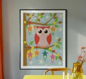 Die detaillierte Illustration zeigt eine ruhige Eule auf einem Ast, die eine Aura von Frieden und Weisheit ausstrahlt.