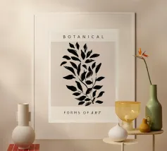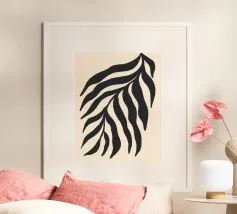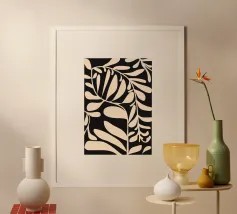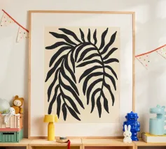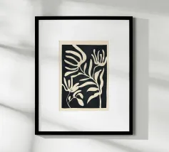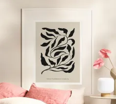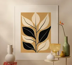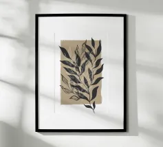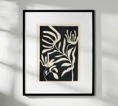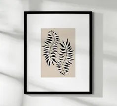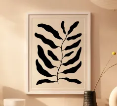 Schwarze Blattsilhouetten Poster mit Holzrahmen