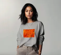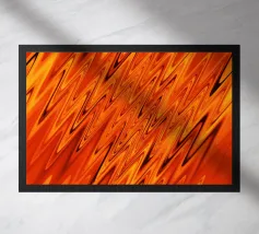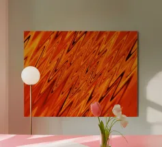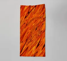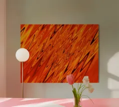 Das Bild zeigt dynamische und aufwärtsgerichtete Wellen und Muster in den Farben Orange und Rot.
