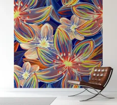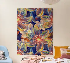 Fluoreszierende lebendige und kühne tropische Blumenmuster eine digitale handgemalte Feier des blühenden Frühlings.