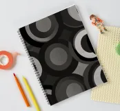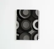 Eine lebhafte Reihe von sich überlappenden Kreisen in verschiedenen Grau-, Schwarz- und Weißtönen schafft ein ansprechendes visuelles Muster. Das Design zeichnet sich durch kontrastierende Farbtöne aus, die für Tiefe sorgen.