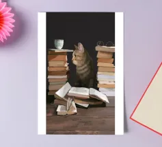 A simple, cozy still life of a cup of hot coffee resting on a stack of old books. The play of light and shadow creates a warm, intellectual, and comforting atmosphere, perfect for any book lover.