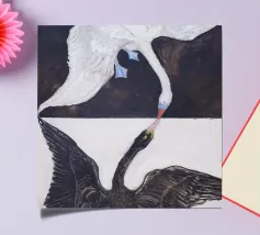 Erleben Sie die beeindruckende Dualität und tiefe Einheit in Hilma af Klints "Gruppe IX-SUW, Der Schwan, Nr. 1" (1915). Dieses ikonische abstrakte Werk zeigt meisterhaft einen weißen und einen schwarzen Schwan, die sich mit ihren Schnäbeln vor einem schwarz-weiß geteilten Hintergrund berühren. Es symbolisiert das harmonische Gleichgewicht der gegensätzlichen Kräfte und die spirituelle Verbindung. Klints Vorreiterrolle in der abstrakten Kunst wird durch ihre symbolische Komposition und den kühnen Einsatz von Kontrasten kraftvoll vermittelt. Unser hochwertiges Digitalposter mit einer beeindruckenden Auflösung von 7000x5000 Pixeln und 300 dpi gibt jedes noch so kleine Detail makellos wieder.