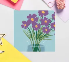 A sweet and romantic illustration of a bouquet of white daisies tied with a pink ribbon. A small tag that reads 'to my love' is attached, making this a perfect depiction of a heartfelt, romantic gesture.