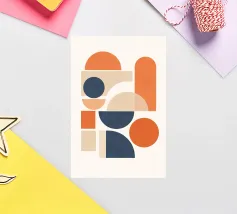 Dieses moderne Kunstwerk verbindet klare Formen mit sanften Farbverläufen in Apricot, Rosé und Petrolblau. Die reduzierte Komposition mit zwei halbkreisförmigen Flächen schafft Ruhe, Balance und stilvolle Ästhetik. Perfekt für moderne Interiors, skandinavische Einrichtungen und alle, die ruhige Wandkunst mit Farbakzent lieben.