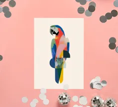 "Patchwork Perfection" captures the vibrant beauty of birds, each adorned in a mosaic of colorful patterns. This art print celebrates the harmony of nature’s palette through intricate feathered details.