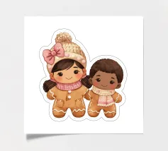 Zwei lächelnde Lebkuchen sind festlich gekleidet, wobei einer eine Weihnachtsmannmütze trägt und der andere einen Apfel in der Hand hält. Um sie herum ist der Satz "I teach the smartest cookies in the batch" (Ich unterrichte die klügsten Kekse in der Gruppe) gedruckt, der ein spielerisches, pädagogisches Thema hinzufügt.