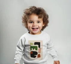 Unsere Baby Sweatshirts bestehen aus 85 % Bio-Baumwolle und 15 % recyceltem Polyester.