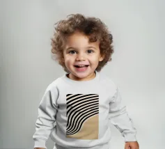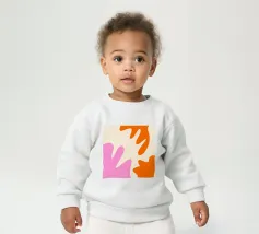 Unsere Baby Sweatshirts bestehen aus 85 % Bio-Baumwolle und 15 % recyceltem Polyester.