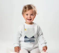 Unsere Baby Sweatshirts bestehen aus 85 % Bio-Baumwolle und 15 % recyceltem Polyester.