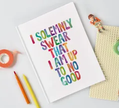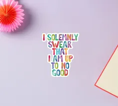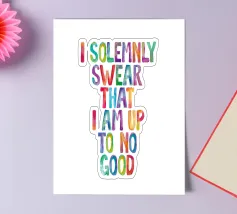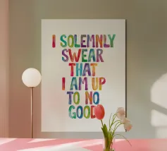 Bringen Sie einen Hauch von Magie in Ihren Raum mit diesem bezaubernden Typografie-Kunstdruck. Der spitzbübische Satz "I Solemnly Swear That I Am Up To No Good" (Ich schwöre feierlich, dass ich nichts Böses im Schilde führe) erwacht in leuchtenden Regenbogen-Aquarell-Schriftzügen, die von Hand gemalt wurden, auf einem strahlend weißen Hintergrund zum Leben. Dieses auffällige Stück fängt den Geist des Abenteuers und der Verspieltheit ein und eignet sich perfekt für jedes Zimmer, vom Schlafzimmer bis zum Arbeitszimmer. Das farbenfrohe Design verleiht Ihrer Einrichtung einen skurrilen Touch und ist gleichzeitig eine Hommage an eine geliebte magische Welt. Lassen Sie sich mit diesem charmanten Druck täglich daran erinnern, Ihren inneren Marodeur zu umarmen.