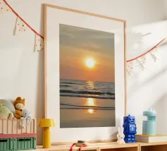 Dieses Kunstwerk zeigt ein markantes Fliesenmuster aus Matosinhos, Portugal, bei dem geometrische Formen und Retro-Farben in perfekter Harmonie zusammenkommen. Das abstrakte Design mit Ocker-, Lavendel-, Oliven- und Cremetönen spiegelt die moderne Ästhetik der Jahrhundertmitte wider und trägt gleichzeitig das kulturelle Erbe der traditionellen portugiesischen Azulejos in sich.