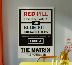 Die Matrix drucken, Alternative Film Poster, Minimal Wall Art, s & w, Rote Pille, Blaue Pille, Wahrheit, Realität, wählen, Dystopie, Film Fans Geschenk