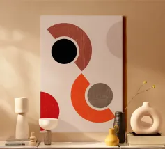 Inspired by the Bauhaus movement, this piece celebrates harmony between structure and spontaneity. Clean lines, balanced asymmetry, and a bold yet restrained color palette come together to create a modernist aesthetic that is both retro and timeless.