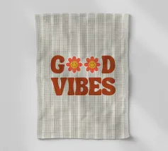 Dieses fröhliche und umweltbewusste Poster zeigt eine freundliche, lächelnde Erde mit großen Augen, die in einem verspielten, strukturierten Stil mit Blau- und Grüntönen dargestellt ist. Die Worte "GOOD" oben und "VIBES" unten sind in einer gewellten, tealfarbenen Retro-Schrift geschrieben, die die Hauptillustration perfekt ergänzt. Das Design ist mit skurrilen blauen Blumen und glitzernden Starbursts akzentuiert, alles vor einem dezenten, gesprenkelten pfirsichfarbenen Hintergrund. Dieses hochwertige Digitalposter (7000x5000 Pixel, 300 dpi) garantiert eine außergewöhnliche Detailtreue und lebendige Farbwiedergabe und ist somit perfekt geeignet, um positive Stimmung zu verbreiten.