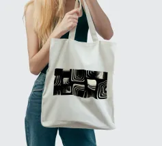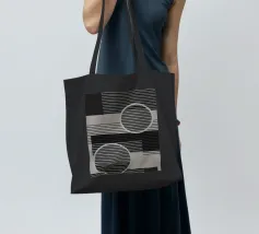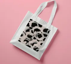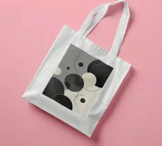 Eine lebhafte Reihe von sich überlappenden Kreisen in verschiedenen Grau-, Schwarz- und Weißtönen schafft ein ansprechendes visuelles Muster. Das Design zeichnet sich durch kontrastierende Farbtöne aus, die für Tiefe sorgen.