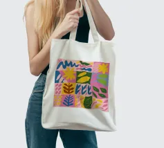 Ein lebhaftes und fröhliches Patchwork aus verschiedenen abstrakten Mustern und Farben, darunter Blumen, Streifen und geometrische Formen, die ein lebendiges und energiegeladenes textilähnliches Design ergeben.