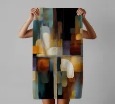 Dieses Kunstwerk zeigt ein dynamisches Arrangement aus geschichteten Formen und Farben, das sanfte Pastelltöne mit kräftigen Tönen kombiniert. Es lädt den Betrachter zu einem zeitgenössischen künstlerischen Ausdruck ein.