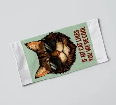 Eine orangefarbene Katze mit mürrischem Gesichtsausdruck und dem Spruch "Frag meine Katze, ob ich Zeit habe" in lustigen und auffälligen Buchstaben. Perfekt für Katzenliebhaber, die wissen, dass ihre Katzen immer das letzte Wort haben. Ideal für alle, die Drucke mit sarkastischem Humor und einem entspannten Stil lieben.