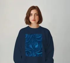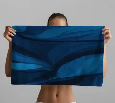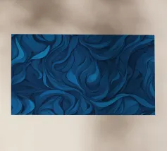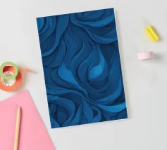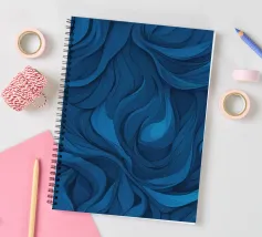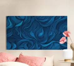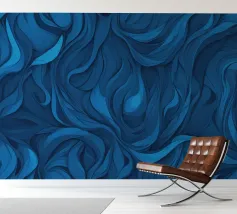 Dieses Design zeigt dynamische, wirbelnde Muster in verschiedenen Blautönen, die eine atemberaubende abstrakte Darstellung erzeugen, die sich perfekt als Desktop-Hintergrund eignet.