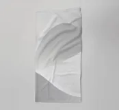 Kurven und Falten aus weißem Stoff fließen anmutig und bilden ein elegantes abstraktes Design. Die glatte Textur und die monochrome Farbpalette vermitteln ein Gefühl von Ruhe und Gelassenheit.