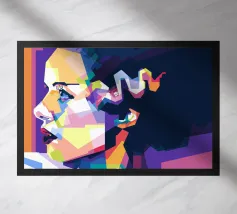 Ein lebhaftes und geometrisches Porträt von Sinead O'Connor im WPAP-Stil mit kühnen, kantigen Formen und einer auffälligen Reihe heller, kontrastreicher Farben. Das Kunstwerk fängt ihre ikonischen Merkmale, wie ihren rasierten Kopf, ihre stechenden Augen und ihren starken Gesichtsausdruck, mit scharfen, fragmentierten Farbblöcken ein. Die Komposition betont Tiefe und Emotionen und behält gleichzeitig die unverwechselbare kubistische Pop-Art-Ästhetik von WPAP bei, wodurch eine visuell dynamische und moderne Hommage an die legendäre Sängerin entsteht.