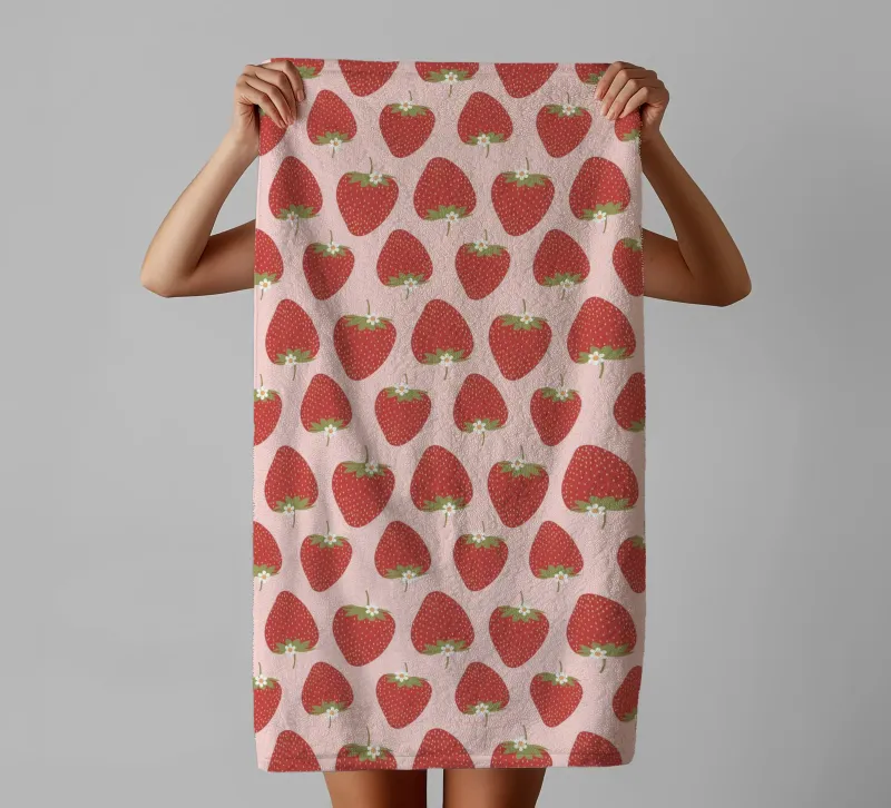 Erdbeeren und weiße Gänseblümchen auf rosa