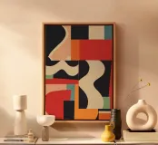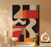 Bunte geometrische abstrakte Kunst 8 Leinwand mit Schattenfugenrahmen