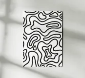 Ein hypnotisierendes und kühnes minimalistisches Muster mit dicken, durchgehenden schwarzen Wellenlinien, die dynamisch über den gesamten weißen Hintergrund fließen. Das abstrakte Design erinnert an organische Formen, topografische Karten oder die fließende Bewegung von Flüssigkeiten und ruft eine coole Retro-Ästhetik der 70er Jahre oder des Groovy-Stils hervor. Die starke, kontrastreiche Schwarz-Weiß-Palette schafft einen kraftvollen, grafischen Fokuspunkt. Dieses hochwertige Digitalposter (7000x5000 Pixel, 300 dpi) stellt sicher, dass die sauberen, scharfen Kanten und kühnen Linien der Originalillustration perfekt erhalten bleiben und liefert ein hervorragendes Kunstwerk für die