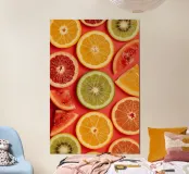 Gemischte geschnittene Zitrusfrüchte auf rotem Hintergrund Poster