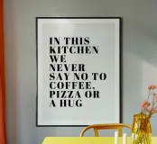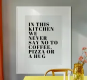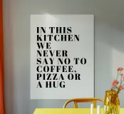 IN DIESER KÜCHE SAGEN WIR NIE NEIN ZU KAFFEE, PIZZA ODER EINER UMARMUNG Poster