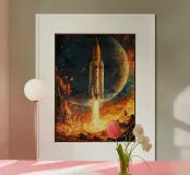 Start einer Weltraumrakete Poster mit Holzrahmen