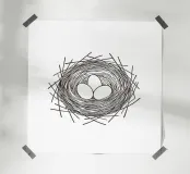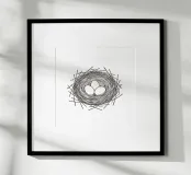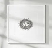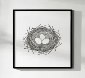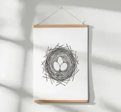 Nest mit drei Eiern, dargestellt mit Strichzeichnungen Poster mit Holzrahmen