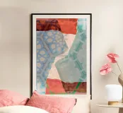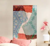 Sich überlappende geometrische Muster in sanften Farbtönen Poster
