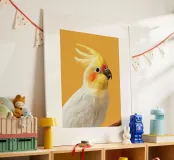 Nymphensittich Papagei Profil Gelbes und weißes Federkleid Poster