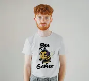Eine niedliche Biene, die ein buntes Headset trägt und einen Game-Controller in der Hand hält, bereit zum Spielen. Dieses Kunstwerk verbindet die Welt des Gamings mit dem Charme einer summenden kleinen Biene, die voller Energie und Freude ist. Perfekt für Gamer, Streamer und alle, die niedliche und ausgefallene Designs lieben.