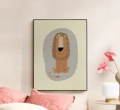 Diese charmante, minimalistische Illustration zeigt einen ruhigen Löwen mit kleiner Krone und bunter Mähne, der Wärme und ruhiges Vertrauen ausstrahlt. Mit seinen einfachen Linien und der modernen Farbpalette fängt das Kunstwerk die sanfte Stärke des Königs des Dschungels ein - perfekt für Kinderzimmer, Kinderzimmer oder fröhliche zeitgenössische Innenräume.