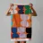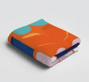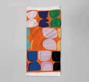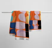Ein farbenfrohes abstraktes Werk, das aus einem Gitter aus organischen und geometrischen Formen besteht. Die ausgewogene Komposition und die leuchtende Farbpalette aus Orange, Blau und Schwarz schaffen ein spielerisches und doch harmonisches Design.