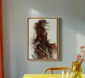 Diese ausdrucksstarke Illustration zeigt eine kampferprobte Piratin mit gezogenem Säbel, die in heroischer Pose dem Wind trotzt. Ihr langer Mantel weht im Wind, während das Licht ihre Konturen akzentuiert. Der malerische Stil kombiniert Weiblichkeit mit Stärke und Abenteuerlust. Ideal für Liebhaber von Fantasy-Art, Seefahrtsabenteuern oder starken Frauenfiguren. Dieses Bild symbolisiert Mut, Freiheit und Eigenständigkeit – perfekt als kraftvolles Motiv für kreative Räume oder Persönlichkeiten mit rebellischem Geist.