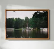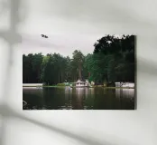 Dieses ist eines meiner persönlichen Lieblingsbilder. Es zeigt einen Waldsee in Ostdeutschland mit weißen Holzhäusern, die noch aus der DDR-Zeit stammen. Fotografiert habe ich das Motiv an einem wolkenverhangenen Herbsttag. Ich hoffe, es gefällt dir auch so sehr! :)