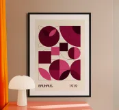 Bauhaus Intersecting Shapes Print | Rosa & Maroon Geometrisch Hahnemühle