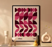 Bauhaus Pattern Poster | Pink & Wine Geometric Design Print Hahnemühle
