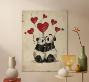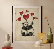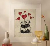 Pandas tauschen Zuneigung mit herzförmigen Luftballons aus Poster