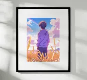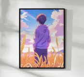 Ein Junge stehend in offenen Kornfeld am sonnigen Tag Lofi Kunst Poster
