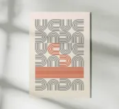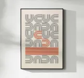 Eine präzise und rhythmische abstrakte Komposition mit einem sich wiederholenden Muster aus stilisierten U-Formen, die aus parallelen Linien bestehen. Das Gesamtdesign erinnert stark an die Ästhetik der Jahrhundertmitte und des Art déco. Das Muster ist in erster Linie in einem gedämpften Grau/Taupe auf einem weichen cremefarbenen Hintergrund gehalten, wird aber durch kühne Segmente in Rostrot dramatisch unterbrochen: eine zentrale, längliche S-Form und ein massiver horizontaler Block aus dünnen roten Linien am unteren Rand. Dieses Poster ist ein hochwertiger digitaler Download (7000x5000 Pixel, 300 dpi), der eine hervorragende Druckqualität und eine beeindruckende visuelle Wirkung für moderne Innenräume gewährleistet.