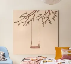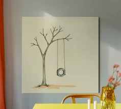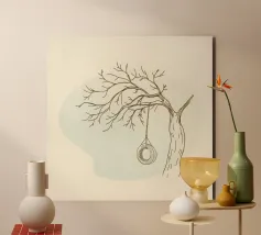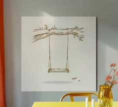 Leere Schaukel an einem Ast hängend in einer minimalistischen Kunst Alu-Dibond